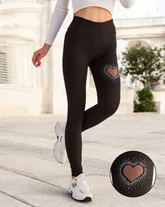 - Women's leggings made of lightweight fabric material. The model has a wide and elastic elastic waistband. High-waisted pants and with a subtle heart-shaped decoration. Perfect for an active time! NOTE: Measurement accuracy (+/-) 1 cm.