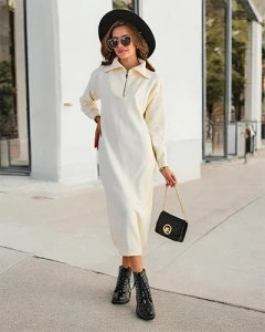 - Women's midi sweater dress with long sleeves. Model made of knitwear. Neckline fastened with a zipper. Must have this season! NOTE: Measurement accuracy (+/-) 1 cm. Dimensions measured flat.