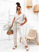 Royalfashion Women's jumpsuit with wide pants and patterned short sleeve blouse